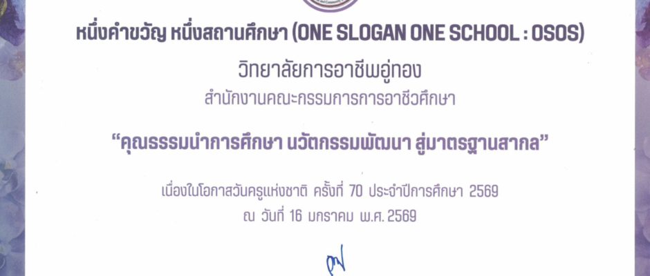 หนึ่งคำขวัญ หนึ่งสถานศึกษา (ONE SLOGAN ONE SCHOOL : OSOS) วันครูแห่งชาติ ประจำปีการศึกษา 2569