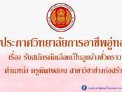 เรื่อง รับสมัครคัดเลือกบุคคลเป็นลูกจ้างชั่วคราว ตำแหน่ง ครูพิเศษสอน สาขาวิชาช่างก่อสร้าง