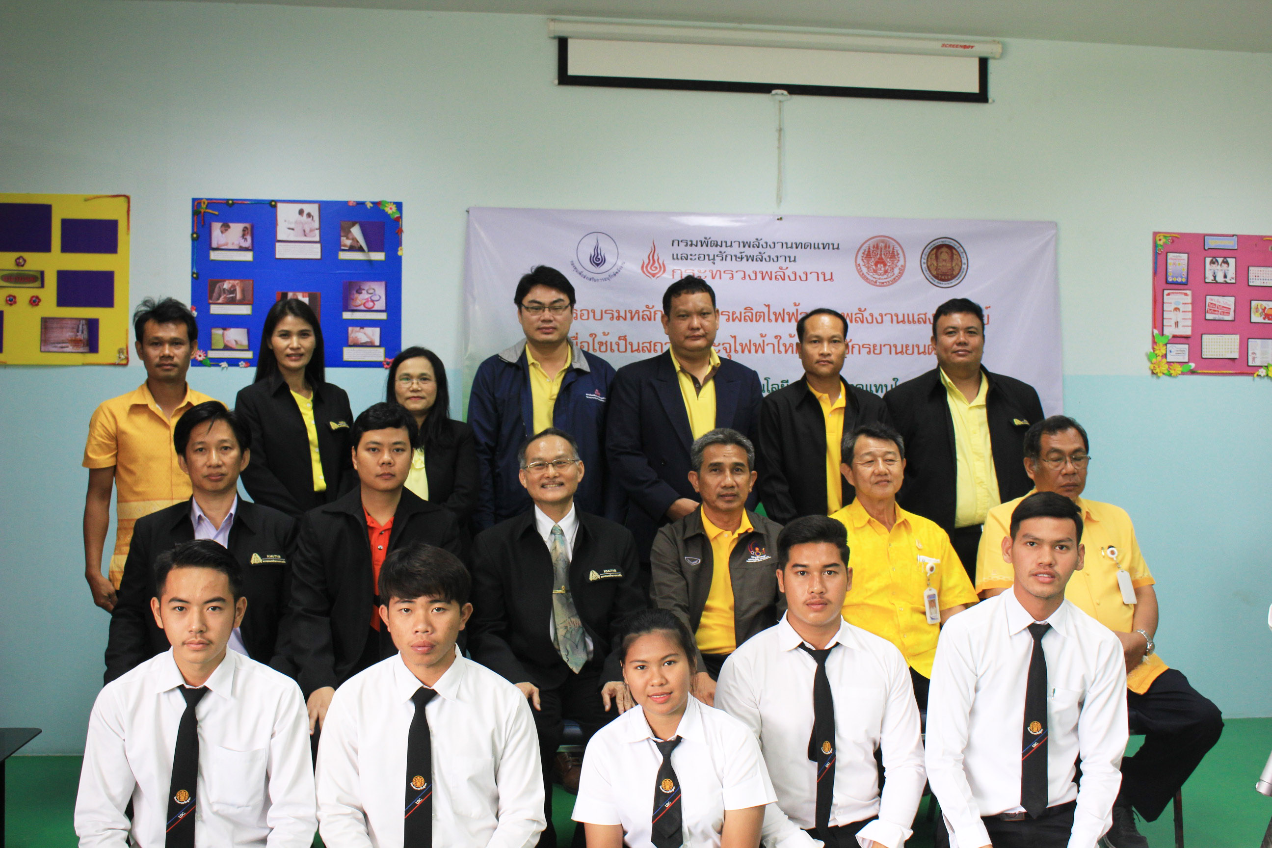 วิทยาลัยการอาชีพอู่ทอง ร่วมกับ มหาวิทยาลัยเทคโนโลยีพระจอมเกล้าพระนครเหนือ จัดอบรมหลักสูตรการผลิตไฟฟ้าจากพลังงานแสงอาทิตย์ เพื่อใช้เป็นสถานีประจุไฟฟ้าให้กับรถจักรยานยนต์ไฟฟ้า ภายใต้โครงการถ่ายทอดและเผยแพร่เทคโนโลยีพลังงานทดแทนในหน่วยงานภาครัฐ (สำนักงานคณะกรรมการอาชีวศึกษา) ระยะที่ ๒ โดยกรมพัฒนาพลังงานทดแทนและอนุรักษ์พลังงานในวันที่ ๓๑ กรกฎาคม ๒๕๖๑ ณ วิทยาลัยการอาชีพอู่ทอง