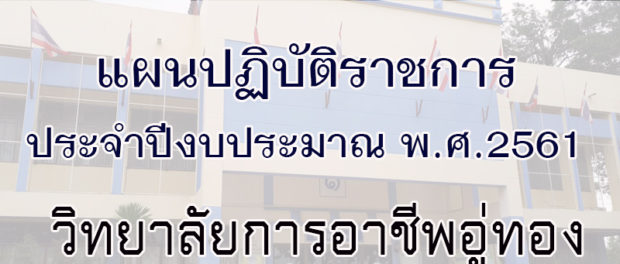 แผนปฏิบัติราชการ ประจำปีงบประมาณ พ.ศ.2561 Posted on 04/03/2019 by งานศูนย์ข้อมูล in แผนปฏิบัติราชการ // 0 Comments แผนปฏิบัติราชการ วิทยาลัยการอาชีพอู่ทอง ประจำปีงบประมาณ พ.ศ.2561 อ่านต่อ…