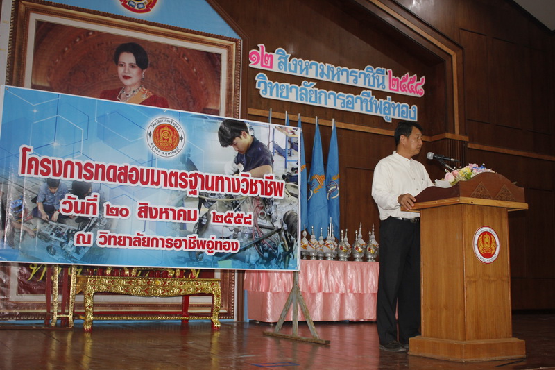 โครงการทดสอบมาตรฐานวิชาชีพ Posted on 20/08/2015 by Administrator in กิจกรรม, กิจกรรมวิทยาลัยและโครงการ // 0 Comments โครงการทดสอบมาตรฐานวิชาชีพ วิทยาลัยการอาชีพอู่ทอง ในวันพฤหัสบดีที่ ๒๐ สิงหาคม พ.ศ. ๒๕๕๘ ณ วิทยาลัยการอาชีพอู่ทอง