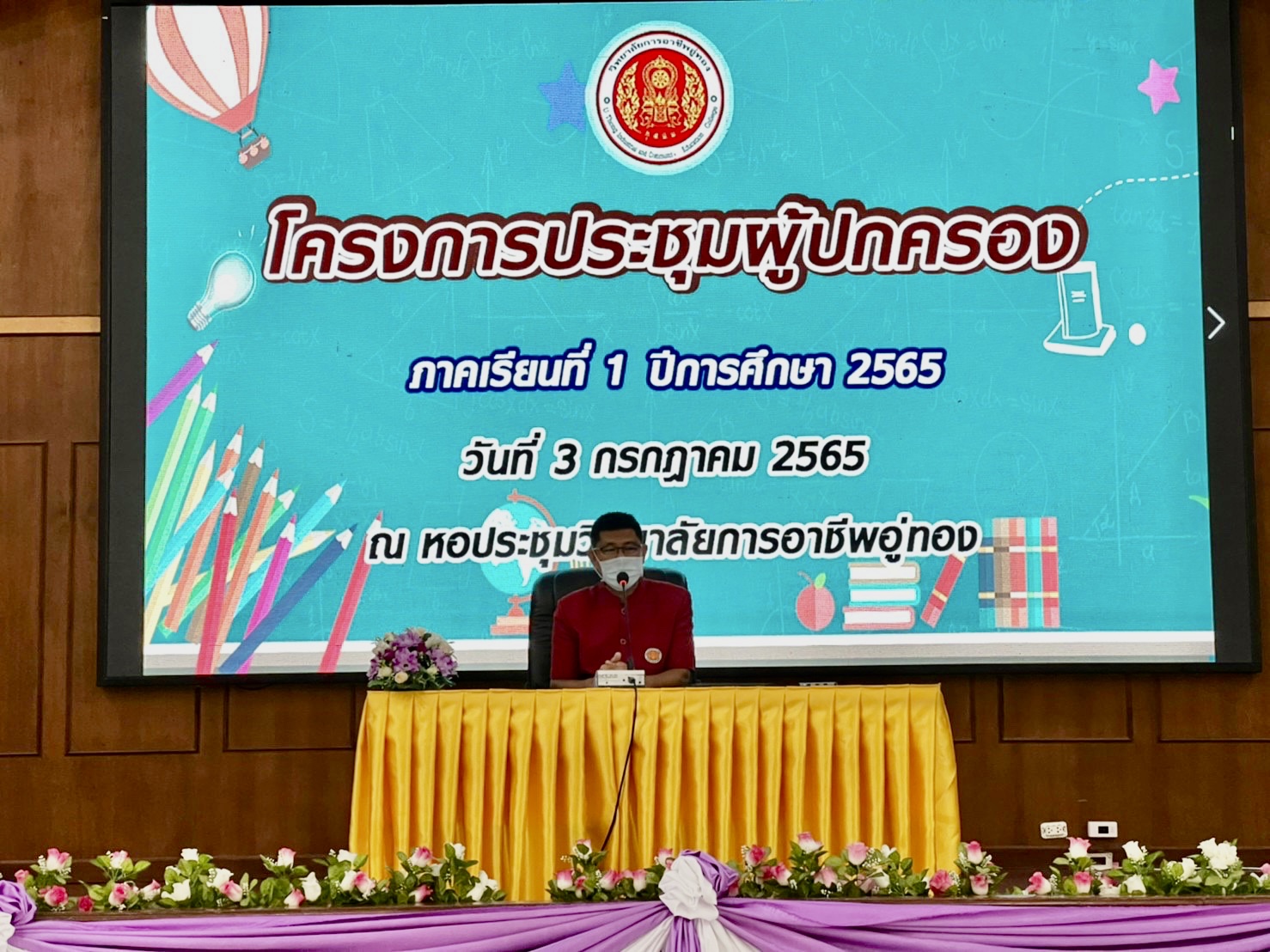 ประชุมผู้ปกครอง ภาคเรียนที่ ๑ ปีการศึกษา ๒๕๖๕ Posted on 04/07/2022 by งานประชาสัมพันธ์ in กิจกรรมวิทยาลัย // 0 Comments ทยาลัยการอาชีพอู่ทอง จัดโครงการประชุมผู้ปกครอง ภาคเรียนที่ ๑ ปีการศึกษา ๒๕๖๕ ในวันอาทิตย์ที่ ๓ กรกฎาคม ๒๕๖๕ เวลา ๐๘.๓๐ น. ณ หอประชุมวิทยาลัยการอาชีพอู่ทอง