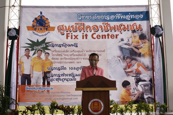พิธีเปิดศูนย์ฝึกอาชีพชุมชน Fix it Center อำเภออู่ทอง Posted on 15/12/2014 by Administrator in กิจกรรม, กิจกรรมวิทยาลัยและโครงการ // 0 Comments พิธีเปิดศูนย์ฝึกอาชีพชุมชน Fix it Center อำเภออู่ทอง ประจำปี 2557