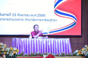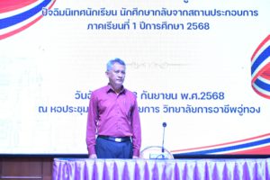 ปีการศึกษา ๒๕๖๘ โดย ดร.ชาตรี จำปาศรี ผู้อำนวยการ เป็นประธานกล่าวเปิดโครงการ ในวันอังคารที่ ๒๓ กันยายน ๒๕๖๘ เวลา ๐๘.๓๐ น. ณ ห้องประชุม วิทยาลัยการอาชีพอู่ทอง