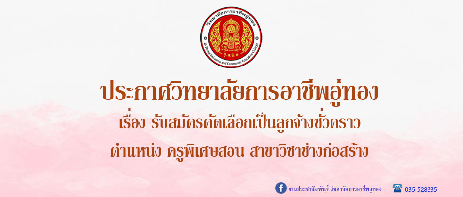เรื่อง รับสมัครคัดเลือกบุคคลเป็นลูกจ้างชั่วคราว ตำแหน่ง ครูพิเศษสอน สาขาวิชาช่างก่อสร้าง