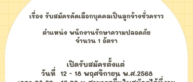 รับสมัครคัดเลือกบุคคลเป็นลูกจ้างชั่วคราว ตำแหน่ง พนักงานรักษาความปลอดภัย