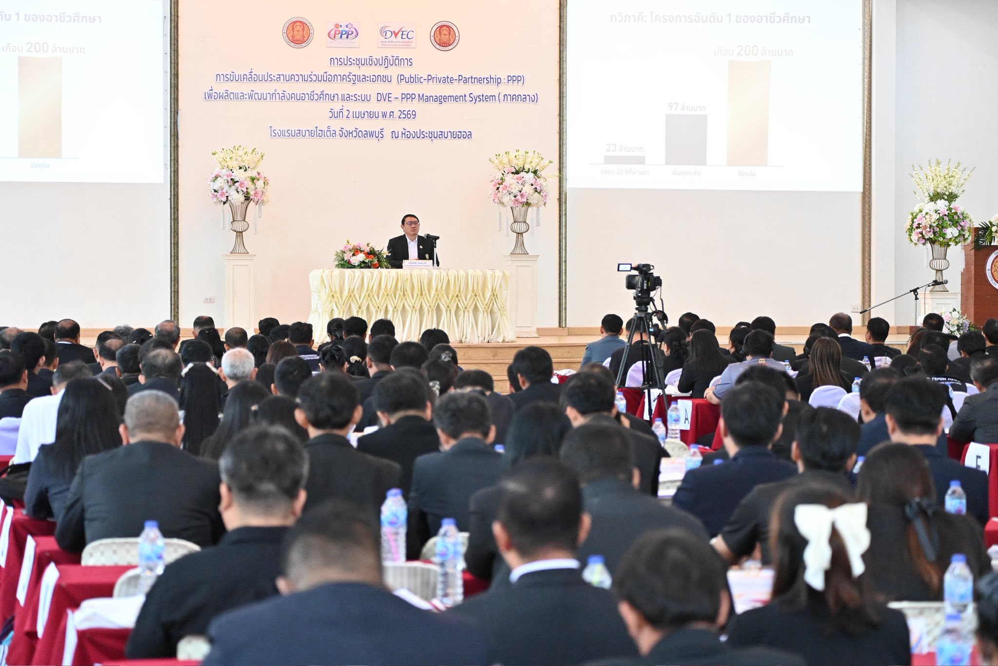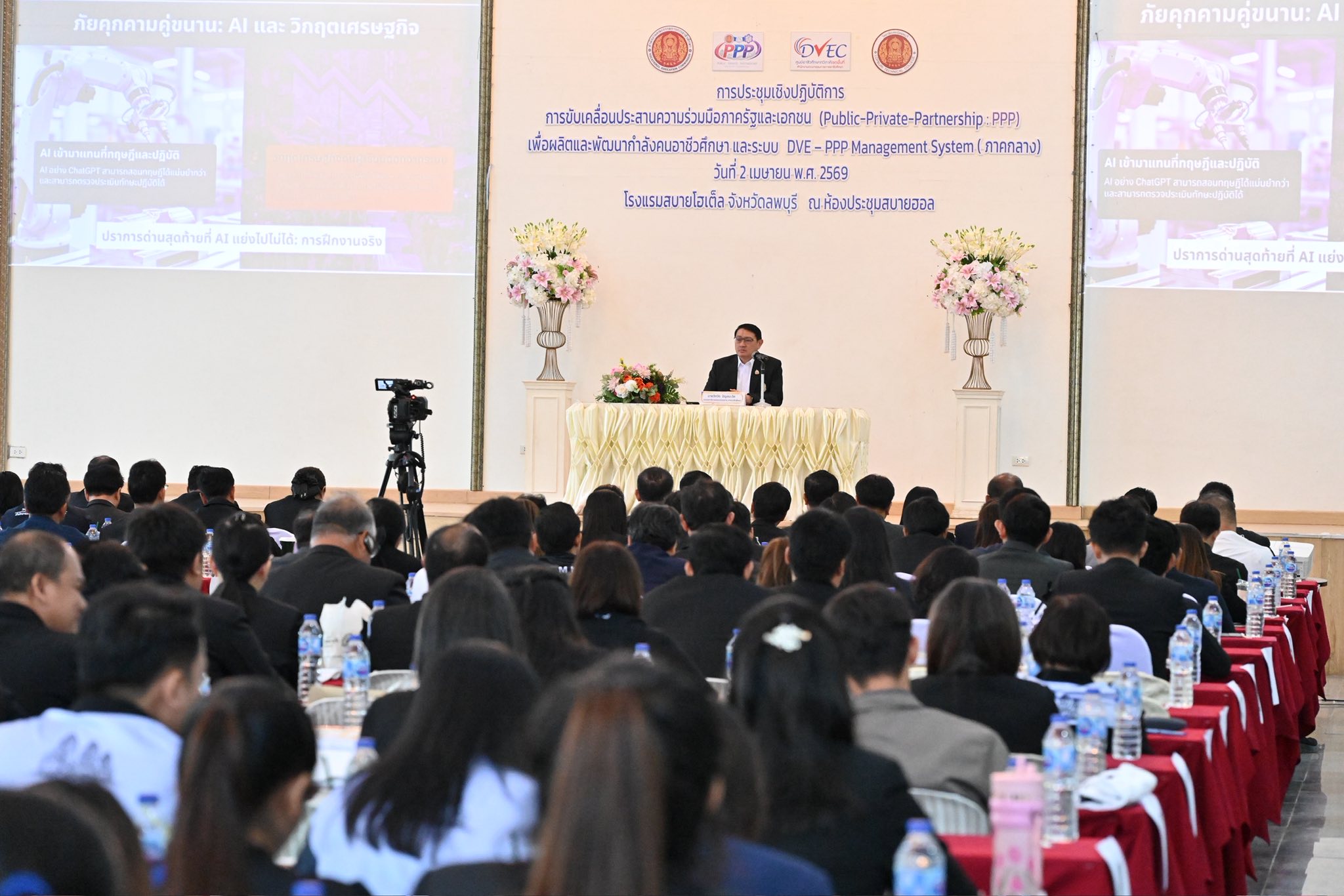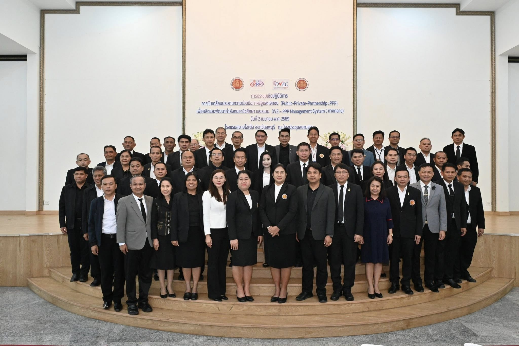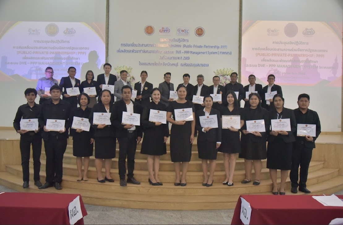 วิทยาลัยการอาชีพอู่ทอง โดย ดร.ชาตรี จำปาศรี ผู้อำนวยการ พร้อมด้วยคณะผู้บริหาร ครู เข้าร่วมประชุมชี้แจงการขับเคลื่อนประสานความร่วมมือภาครัฐและเอกชน (Public-Private-Partnership : PPP) เพื่อผลิตและพัฒนากำลังคนอาชีวศึกษา และระบบ DVE – PPP Management System ๕ ภูมิภาค โดยนายวิทวัต ปัญจมะวัต รองเลขาธิการคณะกรรมการการอาชีวศึกษา เป็นประธานในพิธีเปิด ในวันพฤหัสบดีที่ ๒ เมษายน ๒๕๖๙ ณ โรงแรมสบายโฮเต็ล จังหวัดลพบุรี